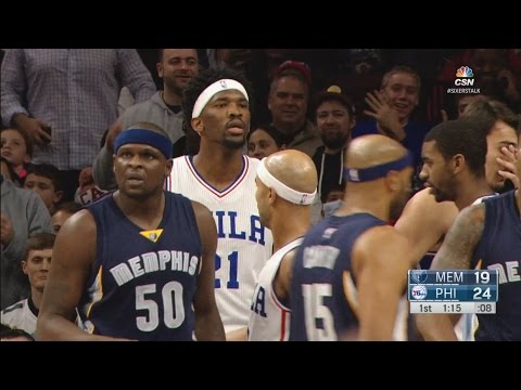Grizzlies sophomore forward Jarell Martin went for the ballsy move of attempting to dunk on rookie Joel Embiid, the No. 3 NBA player in blocks, during the first quarter of the Memphis-Philadelphia game and it all ended up as you might expect.