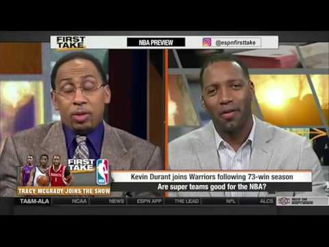 Count NBA legend Tracy McGrady among those critical of Kevin Durant‘s signing with the Golden State. T-Mac, who never made it out of the first round of the playoffs on a big role, showed no sympathy for Durant’s decision to join the star-studded Warriors during a conversation on ESPN’s First Take.